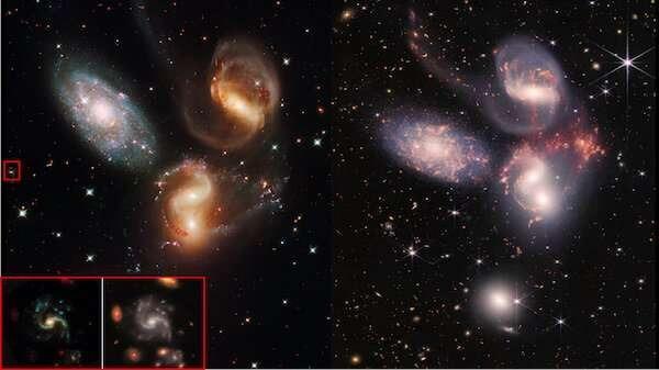 Bộ năm thiên hà của Quintet. Chất lượng ảnh cho thấy công nghệ đã tiến bộ nhường nào. (Ảnh: NASA)