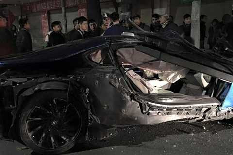 | Tại hiện trường vụ tai nạn, chiếc xe húc vào một cột điện trên vỉa hè, phần đầu chiếc xe bị vỡ nát hoàn toàn, bánh xe hư hỏng nặng, một bánh xe còn nguyên vẹn văng lên vỉa hè. Điều đáng chú ý là chiếc siêu xe của thiếu gia sinh năm 97 này vẫn chưa có biển kiểm soát sau tận 5 tháng sử dụng. |