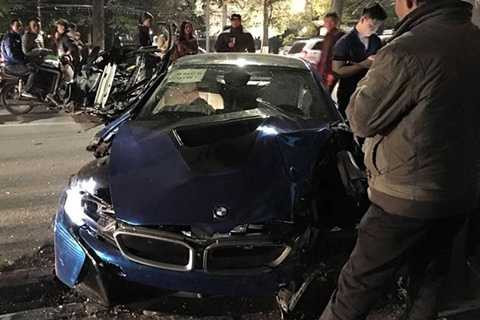 Chỉ mới "đập thùng" chưa đầy 5 tháng, siêu xe BMW i8 của thiếu gia sinh năm 1997 tại Hà Nội đã dính liền hai vụ tai nạn "nát đầu".