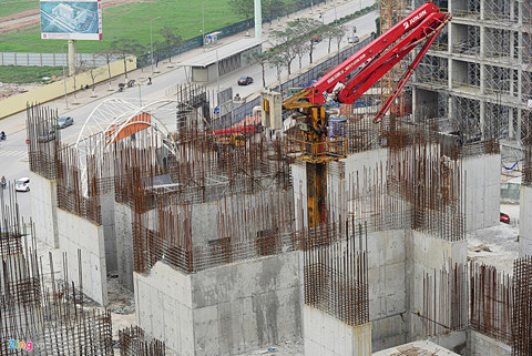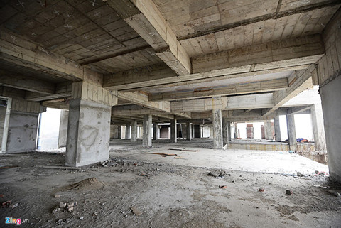 | Theo đúng tiến độ, dự án phải giao nhà cho người mua vào tháng 6/2014. Thế nhưng hiện tại, công trình này mới đổ khung tầng 7 trên tổng số 28 tầng, và hiện đã dừng thi công. Trên công trường không một bóng công nhân làm việc. |