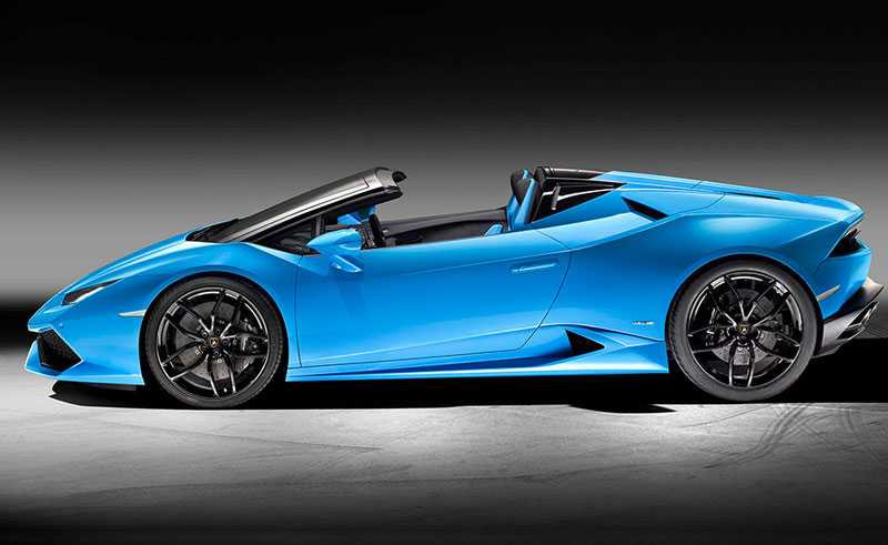 So với phiên bản coupe, Lamborghini Huracan LP 610-4 Spyder được trang bị hai hốc gió tối màu chạy dọc hai bên thân xe. Phần mui mềm có thể đóng/mở trong vòng 17 giây khi xe di chuyển với vận tốc 50 km/h.