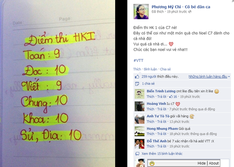 | Bảng điểm gây sốt của Phương Mỹ Chi |