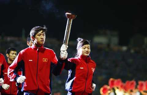 | Hoàng Quý Phước (trái) sẽ cầm cờ dẫn đầu đoàn Việt nam trong lễ khai mạc |