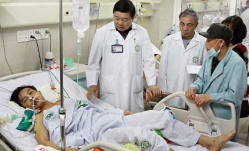 | Bệnh nhân Cao Xuân Hòa được các y, bác sĩ của Bệnh viện Bạch Mai tích cực điều trị trước đó. |