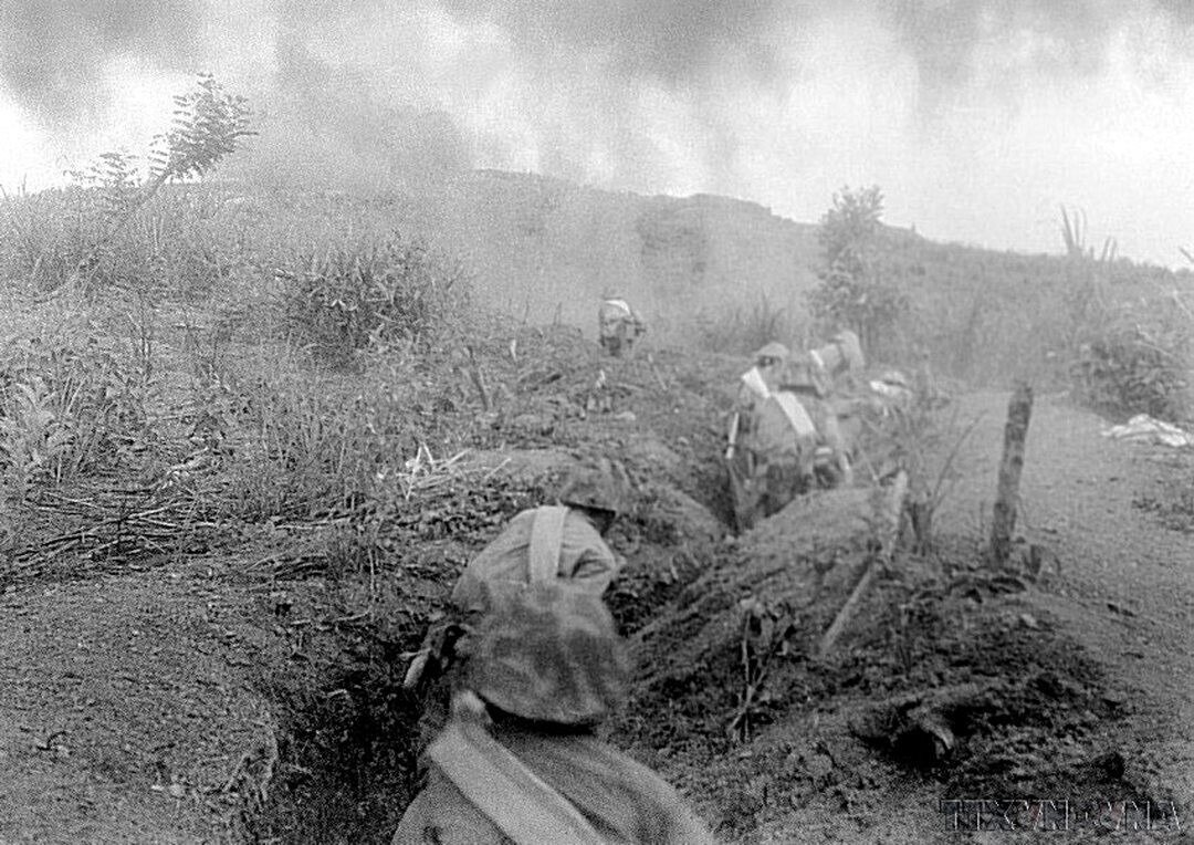 Lực lượng xung kích tấn công tiêu diệt cứ điểm Him Lam ngày 13/3/1954. Ảnh: TTXVN