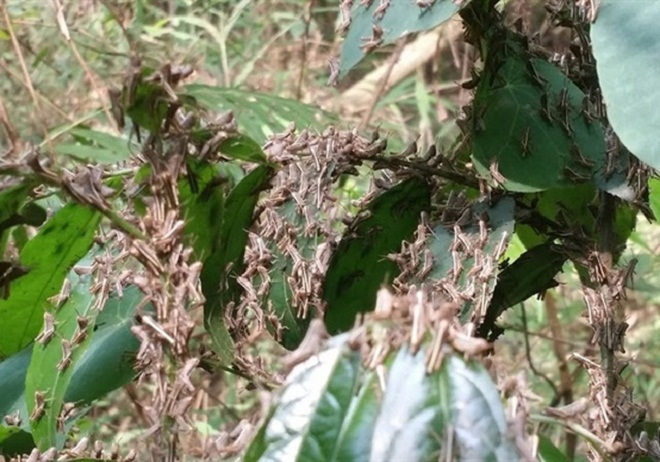Đàn châu chấu đang phá hoại rừng, hoa màu ở huyện Mường Nhé, tỉnh Điện Biên. (Ảnh minh họa).