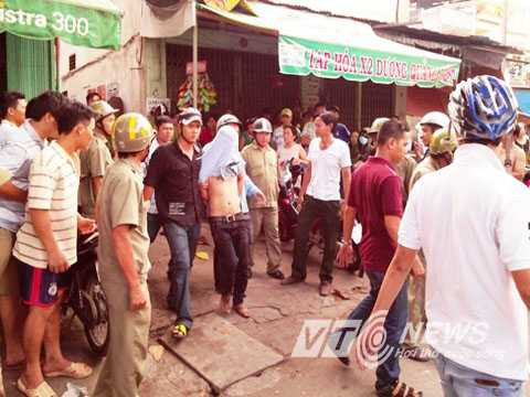 Lúc này, tổ công tác Công an phường Hòa Thạnh (quận Tân Phú) đang trên đường tuần tra phát hiện sự việc liền đến giải quyết. Khi lực lượng công an đến can thiệp, tên Thành dùng vỏ chai bia tấn công khiến anh Vũ Xuân Trường (thuộc tổ công tác Công an phường Hòa Thạnh) bị thương ở tay.