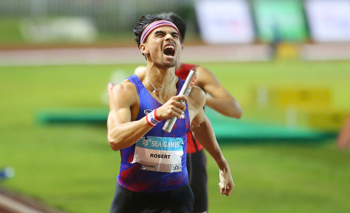 Nhật Hoàng chạy và truyền tín gậy ấn tượng cho Vũ Ngọc Khánh. Chân chạy này không thua gì đối thủ và tiếp tục duy trì lợi thế cho đội Việt Nam.