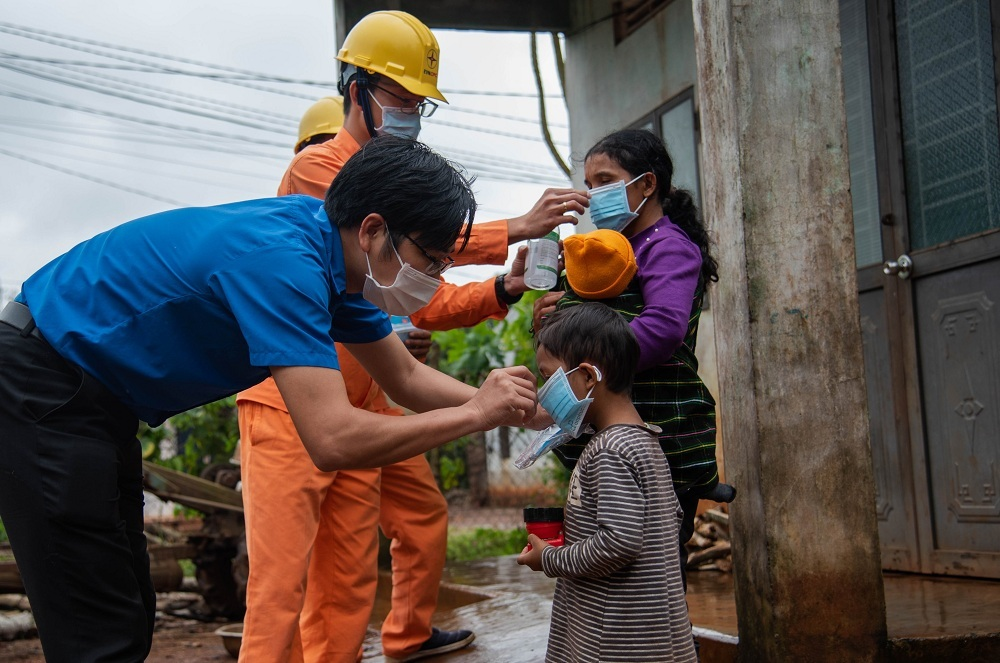 Trong dịp này, các đoàn viên của công ty và Điện lực Ea Kar cũng đã hướng dẫn sử dụng khẩu trang đúng cách, cách áp dụng thông điệp 5K và tuyên truyền các biện pháp phòng chống dịch cho bà con trong buôn.