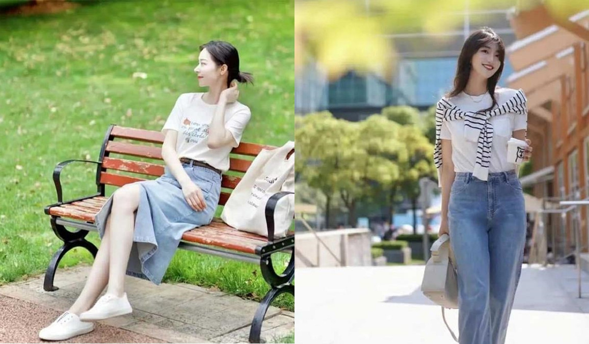 Áo phông và váy denim là những món đồ khá phổ biến trong tủ đồ mùa hè của các cô gái. Kết hợp áo phông với váy denim không chỉ giúp các cô gái có set đồ thoải mái, dễ chịu trong mùa hè mà còn khiến các quý cô trở nên trẻ trung, năng động hơn.