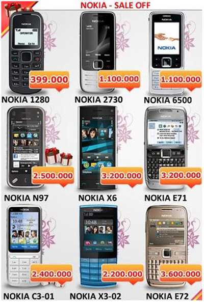 Giảm giá mạnh nhất có lẽ phải kể đến các dòng điện thoại Smartphone tầm trung của Nokia điển hình là Nokia E71, E72. Nokia E71 là một trong những dòng điện thoại thông minh được ưa chuộng nhất, với đầy đủ các tính năng ứng dụng hữu ích 3G, WIFI, định vị toàn cầu GPS, Camera 3.2 Megapixel, hệ điều hành Symbian, cài đặt được hàng trăm ứng dụng, hỗ trợ đầy đủ các ứng dụng văn phòng, giải trí.