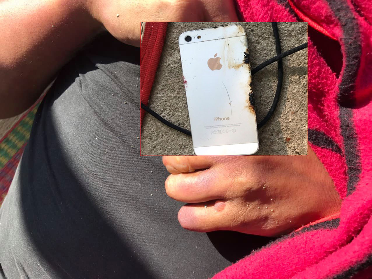 Nạn nhân và chiếc điện thoại iPhone bị cháy.