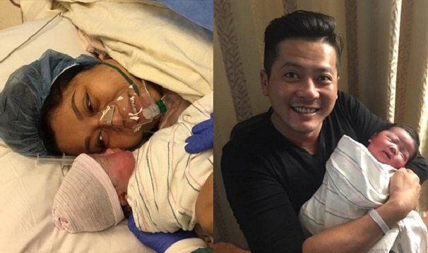 Quỳnh Như không giấu được niềm vui khi ôm con vào lòng dù rất mệt mỏi sau cơn vượt cạn.
