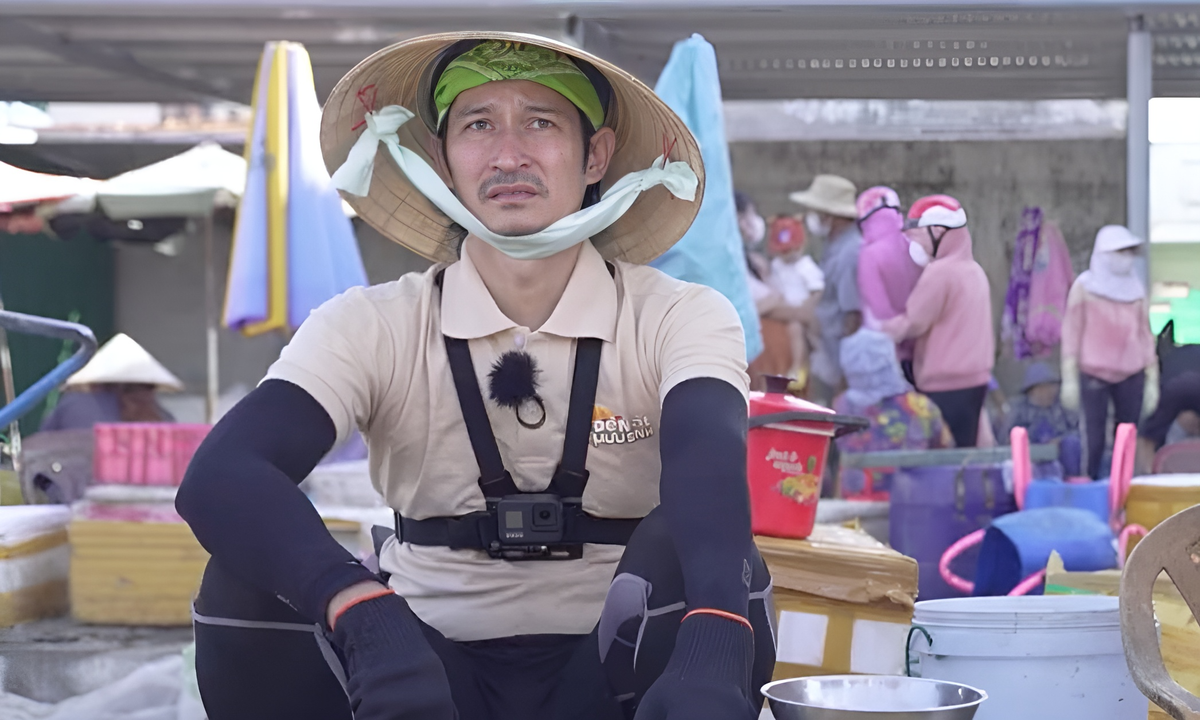Huy Khánh cùng Diệp Bảo Ngọc ra chợ bán mực.