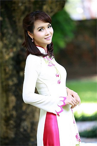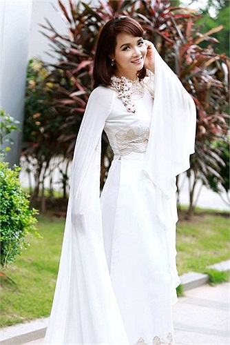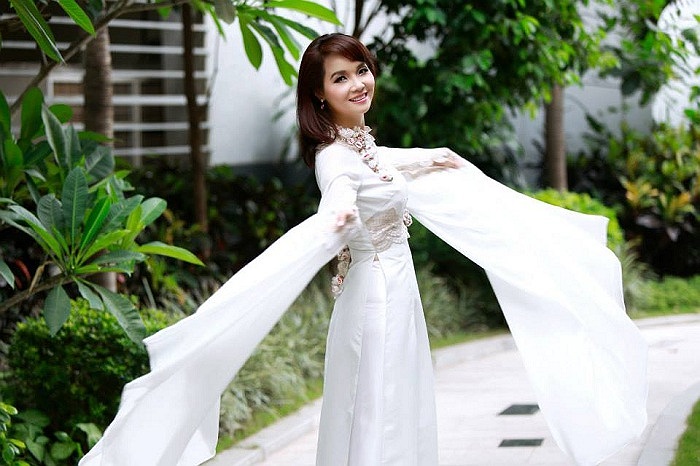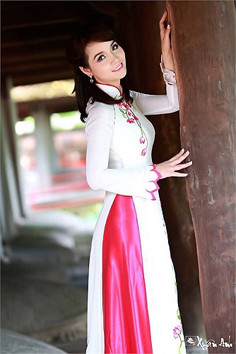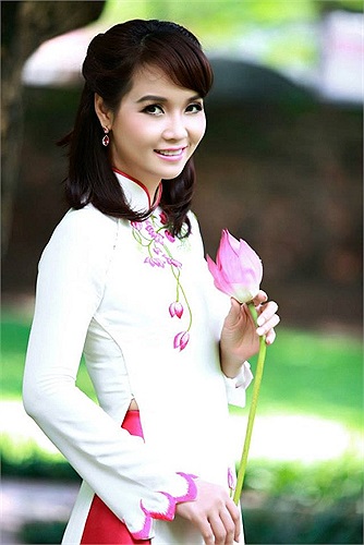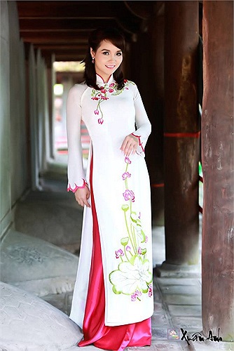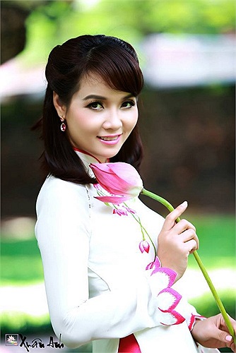 Thướt tha trong tà áo dài chụp ảnh mềm mại và nữ tính với sen, Mai Thu Huyền đẹp và trong trẻo.