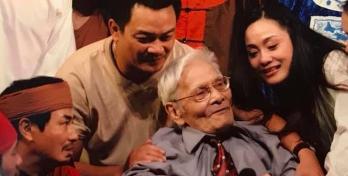 NSND Anh Tú, diễn viên Quách Thu Phương bên cạnh nhà thơ Hoàng Nhuận Cầm - tác giả vở kịch thơ "Kiều Loan".