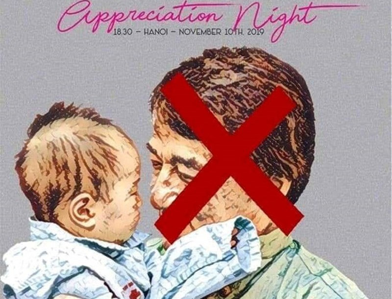Cư dân mạng phản đối việc Operation Smile mời Thành Long đến Việt Nam bằng cách đánh chéo hình ảnh của diễn viên này trên poster của Operation Smile.