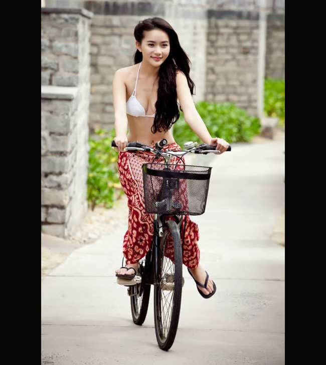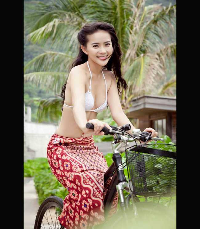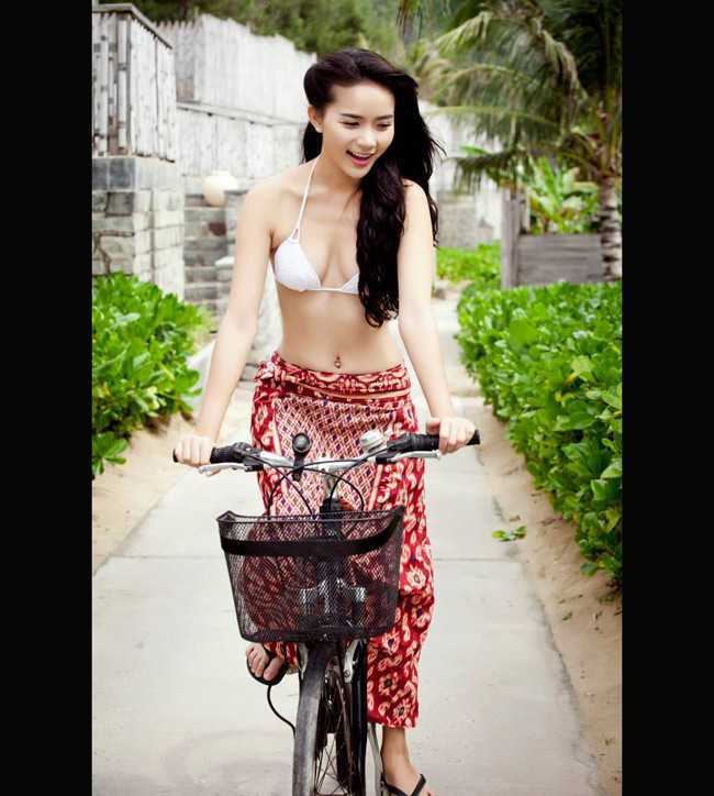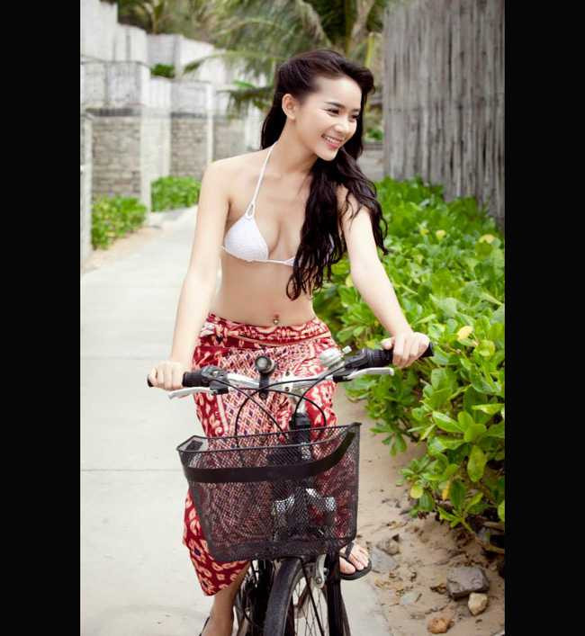Cô thực hiện shoot hình với nội y và xe đạp hết sức hồn nhiên nhưng không kém phần nóng bỏng.