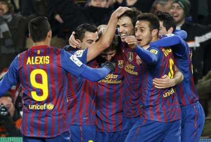 Barcelona (4-3-3): Pinto; Puyol, Pique, Mascherano, Abidal; Xavi, Thiago, Cesc; Cuenca, Messi, Alexis.