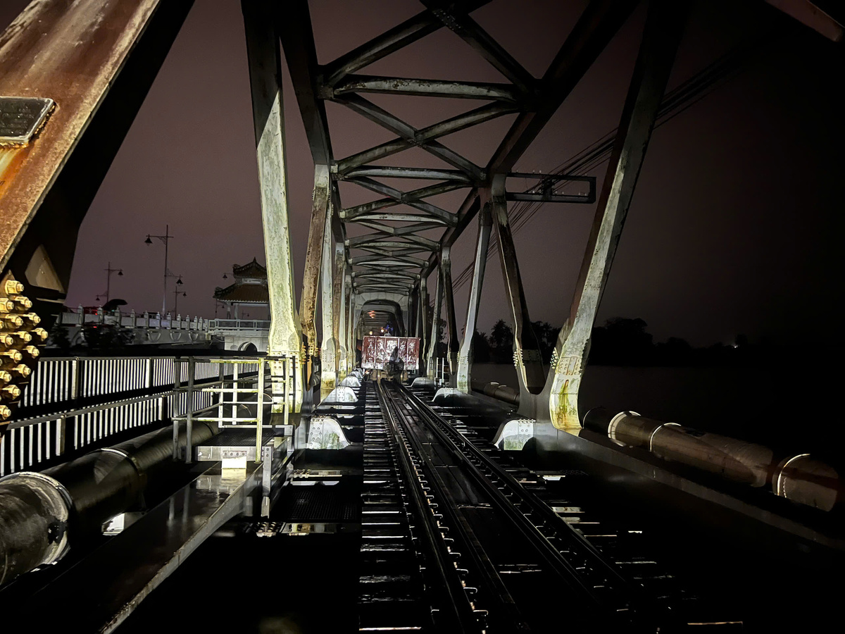 Cụ thể, đến tối 27/10, mực nước sông Hương liên tục dâng cao, đe dọa an toàn cầu đường sắt Bạch Hổ. Để bảo vệ công trình, ngành đường sắt đã khẩn trương điều động 19 toa xe chở đá (gần 700 tấn) án ngữ trên cầu nhằm tăng tải trọng, tránh nguy cơ bị dòng nước siết cuốn trôi.