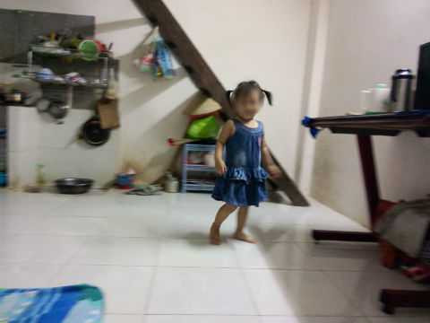 Bé N. đang vui chơi trong căn phòng trọ vào buổi tối. Ảnh: Tử Long
