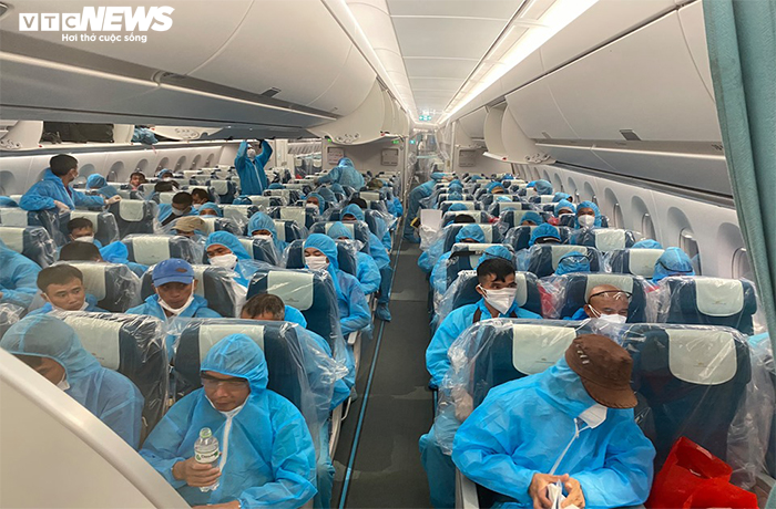 "Tất cả phi hành đoàn, hành khách đều trang bị quần áo bảo hộ y tế toàn thân, kèm khẩu trang, găng tay trên hành trình về Việt Nam. Riêng thành viên tổ bay mang đồ bảo hộ y tế đặc chủng", đại diện Vietnam Airlines nói.