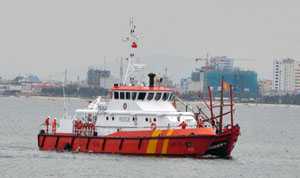 | Tàu cứu hộ SAR 274 của Danang MRCC lai dắt tàu cá bị nạn vào bờ |