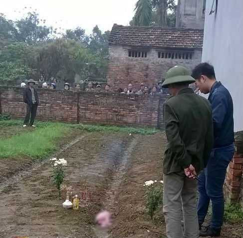 | Xác thai nhi bị mẹ vứt bỏ trong vườn nhà dân. |