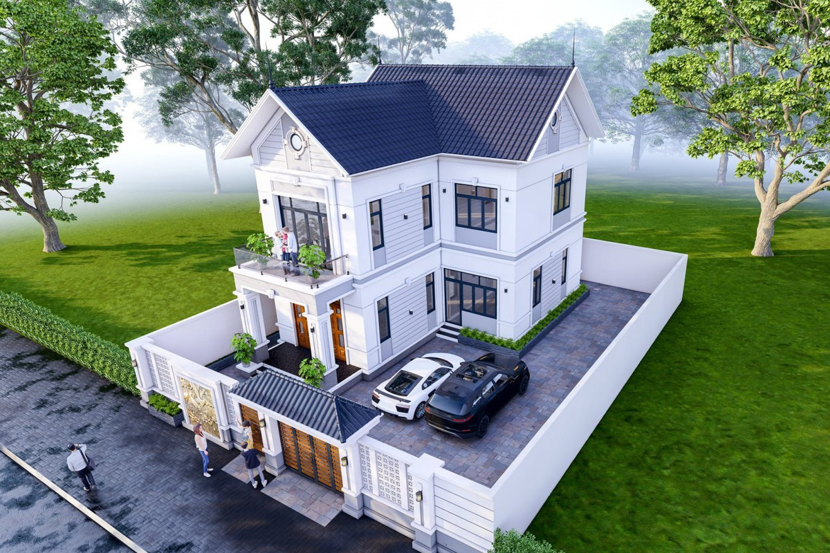 Thiết kế toát lên sự sang trọng và lỗng lẫy qua từng đường nét với gam màu sáng một phần thể hiện được sự tinh tế. Khoảng sân rộng gia chủ có làm không gian xanh ở đây, nếu gia đình có ô tô thì có thể thoải mái dừng đỗ bởi khoảng diện tích sân tương đối rộng.