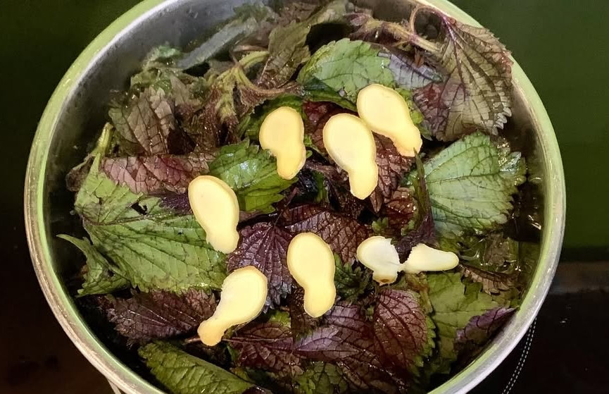 Lá tía tô kết hợp với gừng, có thể tạo thành bài thuốc dân gian hỗ trợ giải cảm, giảm ho, đau bụng và cả giảm cân. (Ảnh minh hoạ)