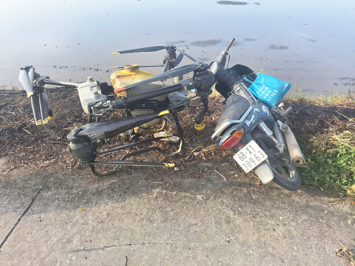 Thông tin ban đầu, khoảng 7h05 phút ngày 20/11, ông B.V.T. (SN 1975, ngụ ấp Hiệp Trung, xã Mỹ Hiệp Sơn) lái xe máy BKS 68X1-309.63 trên đường trở về nhà. Khi đến đoạn đường kênh 15 thuộc tổ 9, ấp Hiệp Trung, xã Mỹ Hiệp Sơn, xe máy của ông va chạm với máy bay xịt thuốc không người lái do M.V.L. (SN 1995, ngụ ấp Hiệp Trung, xã Mỹ Hiệp Sơn) điều khiển.