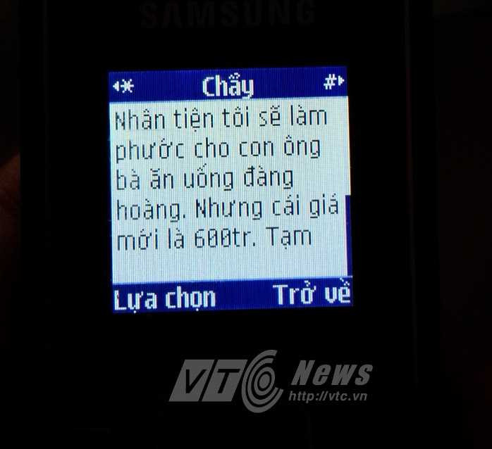 Tin nhắn tiếp: "Tối nay đúng 1h mang theo 500 triệu đến ngã tư Hàng Xanh. Con ông bà sẽ được thả tự do. Nên suy nghĩ lại nếu muốn báo công an".