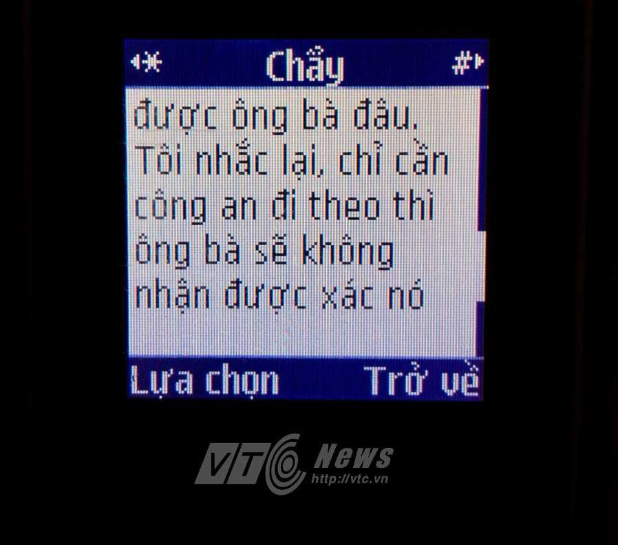 Tin nhắn đe dọa nếu gia đình anh Nguyên báo công an sẽ không nhận được xác Đạt. Ảnh: Nguyễn Minh Hoàng