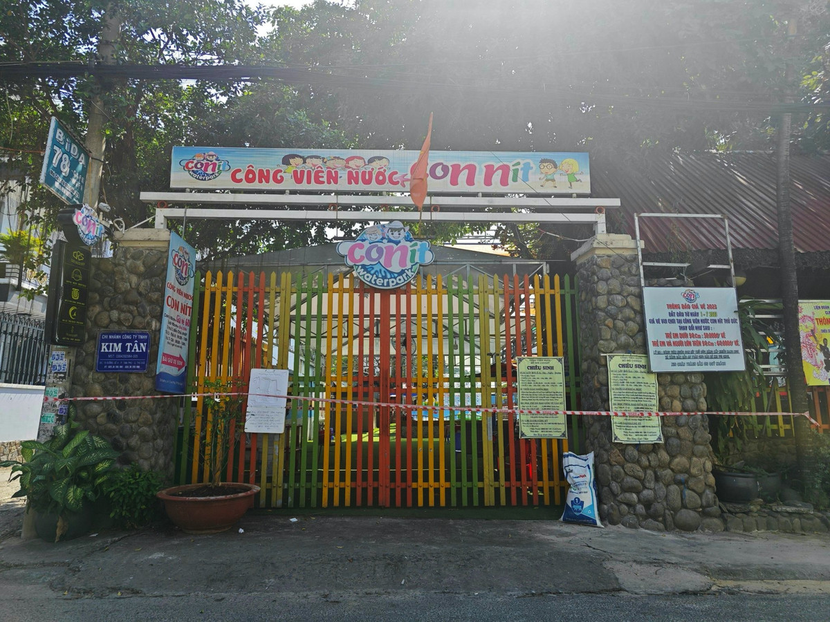 Hiện công viên nước Con Nít đã bị tạm ngưng hoạt động, lực lượng chức năng phong tỏa hiện trường để điều tra.