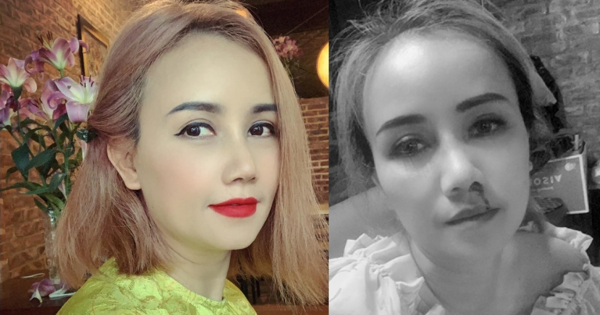 Hình ảnh nữ diễn viên Hoàng Yến sau khi bị đánh.