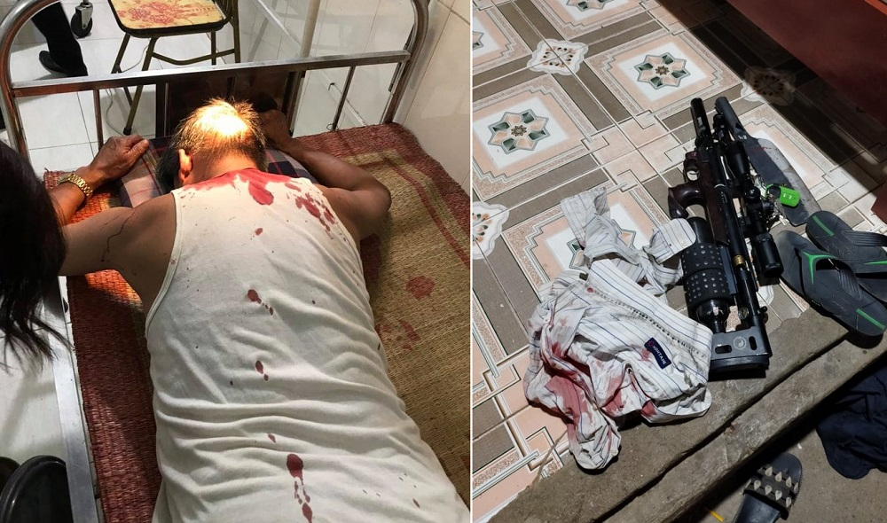 Thấy vậy, người nhà ông Đủ gần đó và hàng xóm cầm theo gậy gộc chạy sang đánh rơi súng của Cường. Lúc này Cường hoảng sợ vứt lại hung khí bỏ trốn.