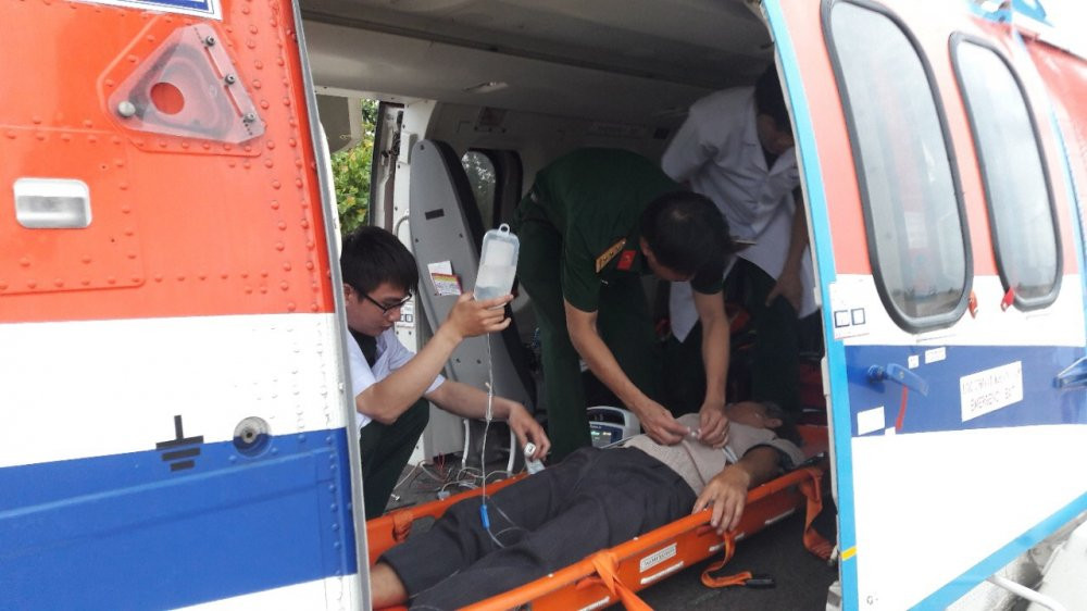 Bệnh nhân được đưa về đất liền bằng trực thăng.