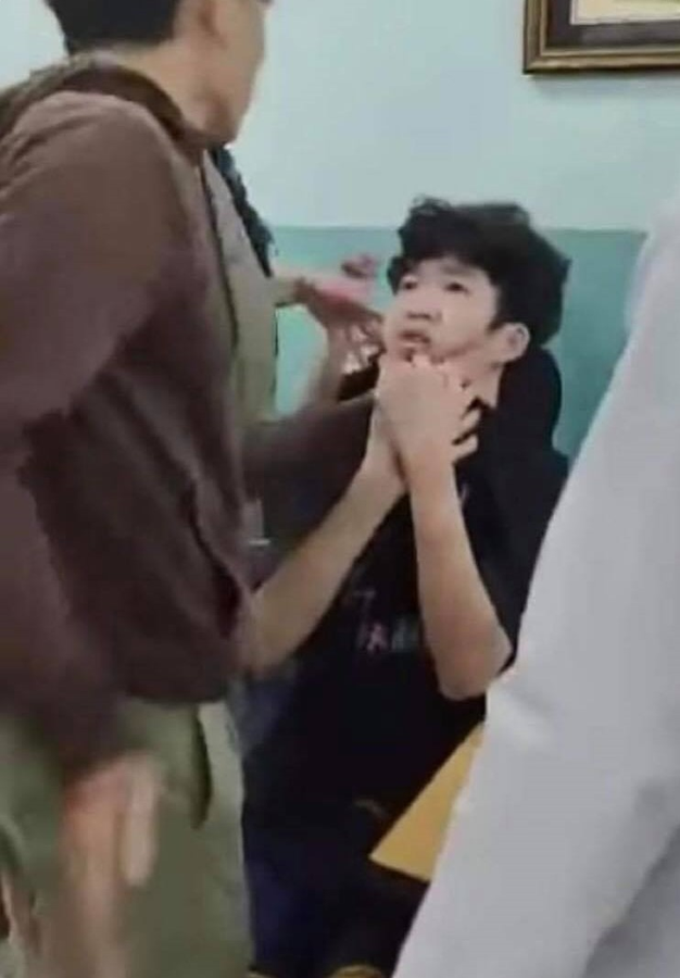 Hình ảnh clip ghi cảnh 2 thiếu niên liên tục bị bảo vệ dân phố đấm, đá, tát vào mặt xảy ra tại phòng giám thị Trường THCS Nguyễn Văn Tố (quận 10, TP.HCM).