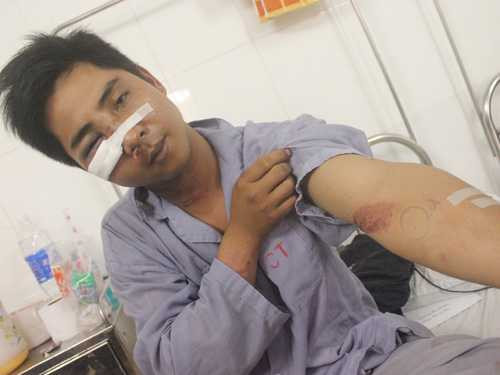 Khi xe vừa dừng lại, một cảnh sát (mặc sắc phục, trên áo có logo của lực lượng cảnh sát) dùng dùi cui lao ra chặn lại và vụt vào mặt anh Hoàng khiến anh bị thương nặng, ngất xỉu. Người dân đã đưa nạn nhân vào cấp cứu tại Bệnh viện Thanh Nhàn.