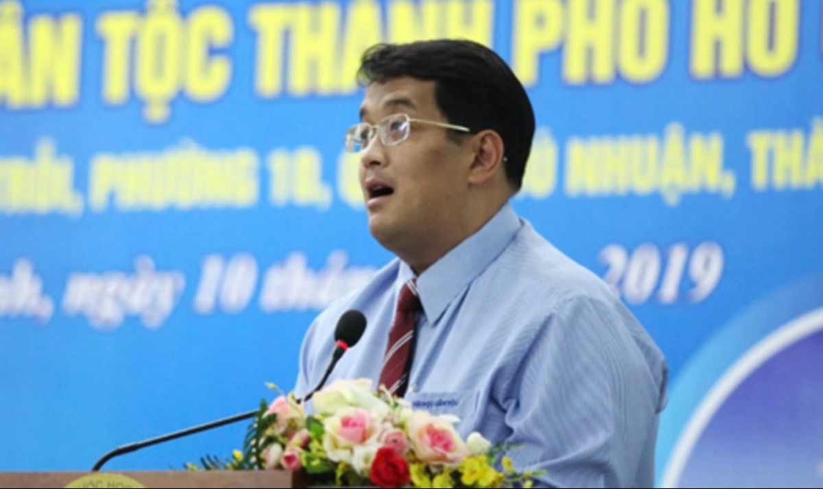 Ông Huỳnh Nguyễn Lộc phát biểu tại một sự kiện (thời điểm chưa bị khởi tố). (Ảnh: Báo Công an TP.HCM).