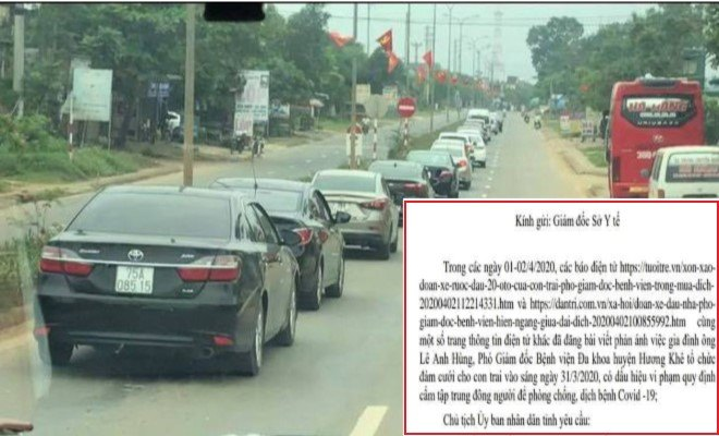 Những người dân chứng kiến cho biết, đoàn xe đi dự đám cưới con trai ông Hùng có khoảng 20 chiếc xuất phát từ khách sạn Đức Tài (đóng trên địa bàn thị trấn Hương Khê), đi dọc theo đường Hồ Chí Minh, vòng quanh bờ hồ Bình Sơn rồi về nhà riêng của vị Phó Giám đốc Bệnh viện ở gần UBND xã Gia Phố (huyện Hương Khê).