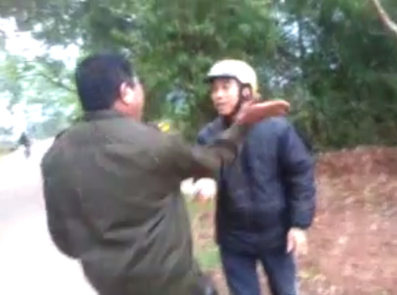 | Hình ảnh viên công an xã tát vào mặt người dân cắt ra từ clip. |