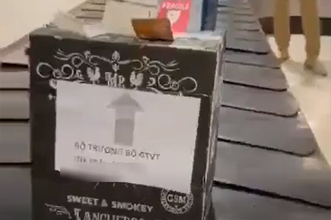 Trước đó, trên mạng xã hội, xuất hiện video clip ghi lại cảnh hàng chục kiện hàng được đóng trong vỏ các hộp rượu ngoại, bên ngoài dán giấy A4, ghi "Bộ trưởng Bộ GTVT", người nhận Mr Mạnh, số điện thoại 0989.464.xxx, trên băng chuyền hành lý sân bay Tân Sơn Nhất.