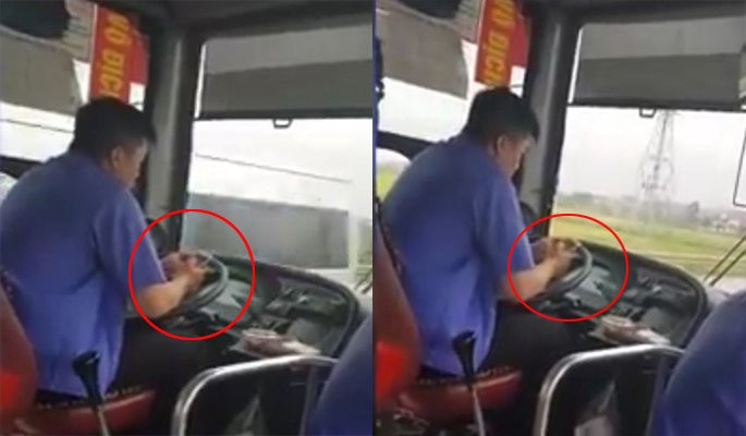Trong lúc lái xe qua huyện Quế Võ (Bắc Ninh), tài xế xe buýt lấy điện thoại ra để nhắn tin và đọc báo. Bức xúc trước hành vi coi thường luật giao thông và tính mạng hành khách của nam tài xế, anh N. lấy điện thoại ra ghi lại sự việc.