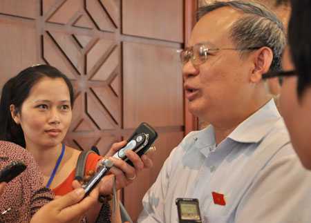 | Ông Đinh Xuân Thảo trả lời báo chí bên hành lang Quốc hội |