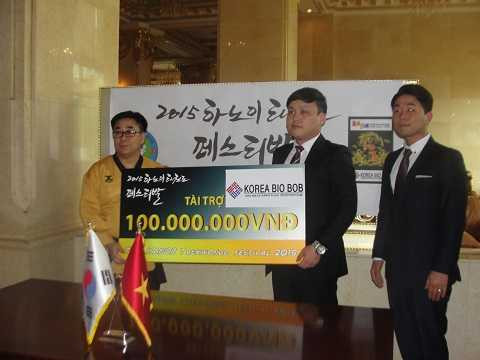 | Ủng hộ “The Hanoi Taekwondo Fesetival 2015”, ông Jeong Sun Ho, CEO công ty Korea Bio Bob đã trao tài trợ cho chương trình này. |