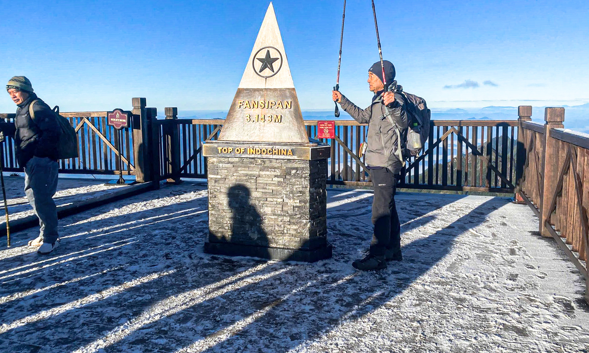 “Sáng nay tôi đi lên gần đỉnh Fansipan thấy băng phủ nhẹ trên cột cờ, tháp. Đây là hiện tượng bình thường nhưng vẫn khiến mọi người ngạc nhiên vì sương muối và băng xuất hiện khá sớm so với mọi năm”, chị Nguyễn Thị Hạnh, du khách tham quan đỉnh Fansipan, cho biết.