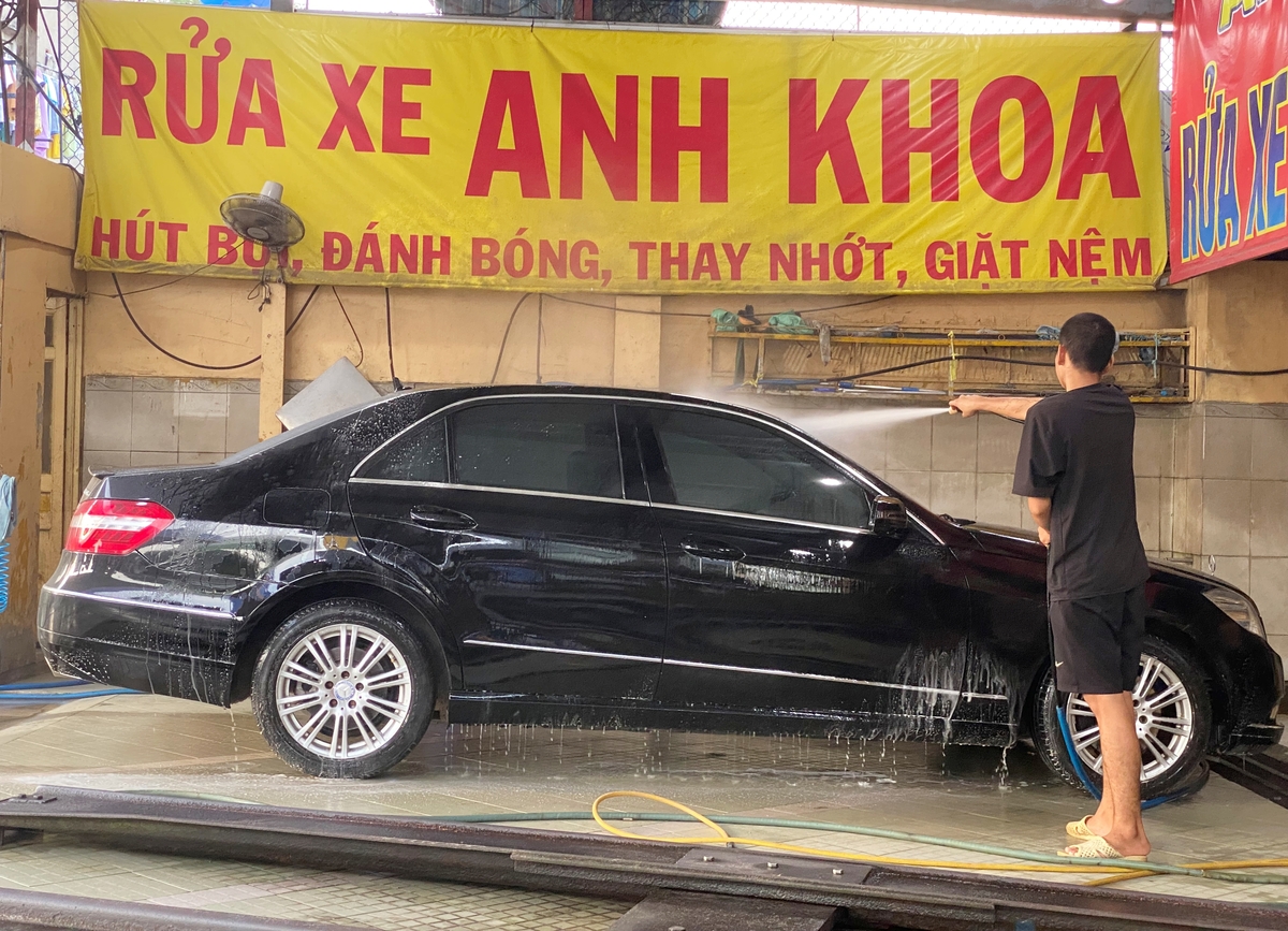 Các tiệm rửa xe ở TP.HCM có doanh thu tăng mạnh. (Ảnh: Đại Việt)