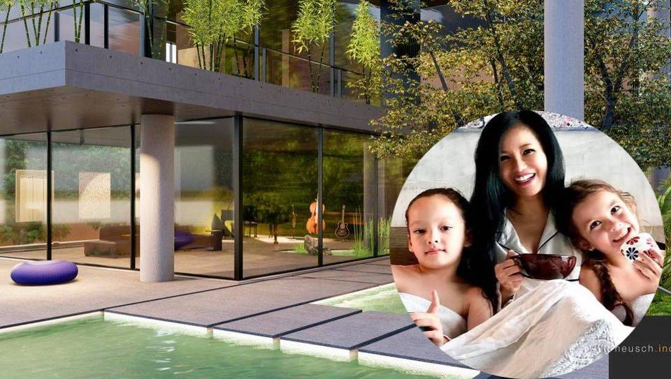 Biệt thự mới của Hồng Nhung được thiết kế với không gian mở. Diva thay tường bằng những tấm kính để tạo cảm giác gần gũi với thiên nhiên.