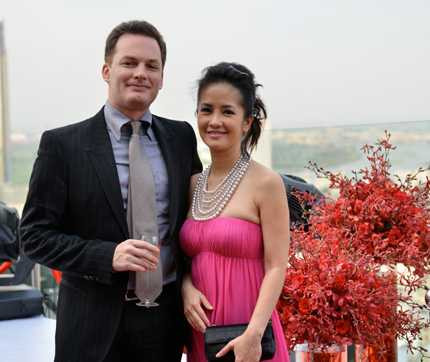 Nhân vật khách mời đặc biệt gây chú ý tại bữa tiệc là Diva Hồng Nhung. Nữ ca sĩ xuất hiện trong chiếc đầm hở vai dài màu hồng và được tháp tùng bởi người chồng ngoại quốc kém tuổi cô, Kevin.